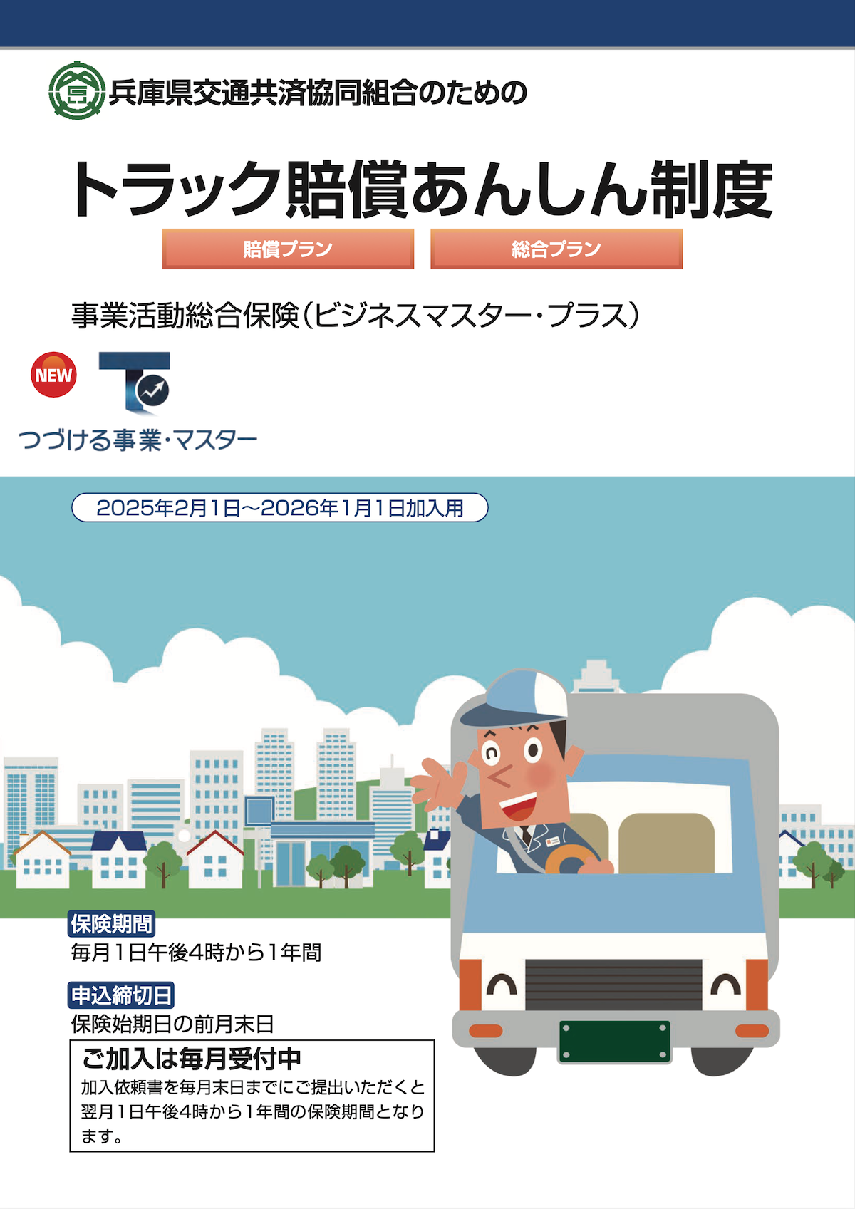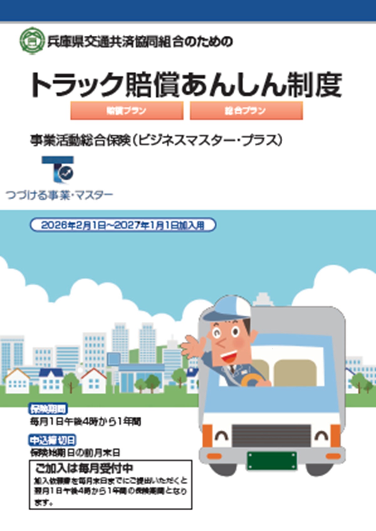 その他の商品・サービスService 兵庫県交通共済協同組合で取り扱っている、その他の商品やサービスについてはこちらをご覧ください。 トラック賠償あんしん制度受託貨物賠償、第三者賠償など、万一の賠償事故に備えて、充実した補償をご用意しました。使用者賠償(オプション)も。詳しくはこちらをご覧ください。 共済について知る 自動車共済自賠責共済・労災共済その他の商品・サービス契約手続き自賠責共済代理店のご案内